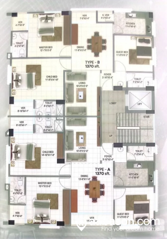 - ✅ আকার: ১৩৭০ বর্গফুট
