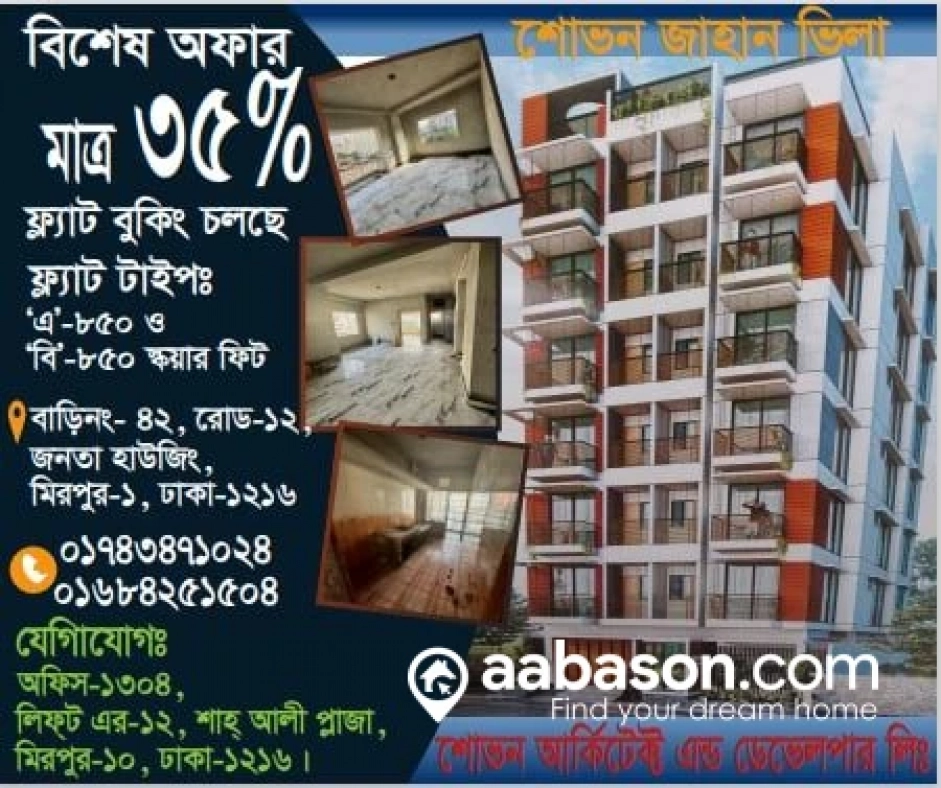 মিরপুরে আপনার স্বপ্নের নীড়ে স্বাগতম! এই প্রশস্ত ১৭০০ বর্গফুটের ফ্ল্যাটটি আরাম এবং সুবিধার একটি নিখুঁত মিশ্রণ, যা পরিবার বা ব্যক্তি বিশেষের জন্য আধুনিক জীবনযাপনের জন্য আদর্শ। সুন্দর ইন্টেরিয়র এবং একটি সুচিন্তিত নকশা সহ, এই সম্পত্তিটি আপনার স্বপ্নের আবাস হওয়ার জন্য প্রস্তুত।