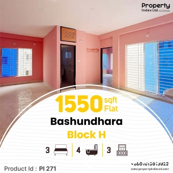Welcome to your future home in the heart of Bashundhara Residential Area! This spacious 1550 sqft flat offers a comfortable and modern living experience. Perfect for families, this property boasts 3 bedrooms and 3 bathrooms, ensuring ample space for everyone.